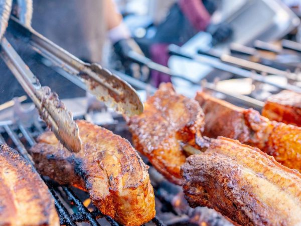 Slow roasted over an open flame, the pork bellies are rendered down and sliced to order. The pork belly can be served over a hot bed of steaming jasmine rice or in a toasted buttery croissant with egg and cheese.